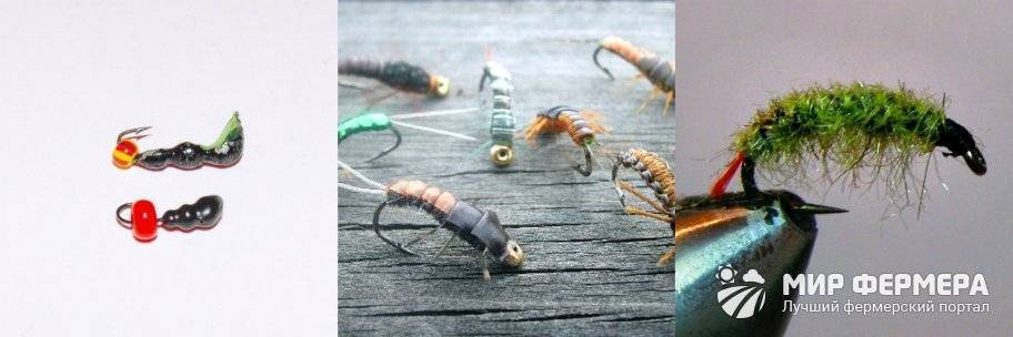 Из предыдущего раздела можно сделать вывод, что ловить хариуса зимой лучше на мормышку или донную удочку, причем все эти способы предполагают использование приманок, привлекающих внимание рыбы (рисунок 5). Использование блесны для рыбалки может быть действительно успешным, ведь в природных условиях эта рыба питается беспозвоночными, реже – мальками. Блесна особенно хорошо помогает в ловле экземпляров среднего и крупного размера