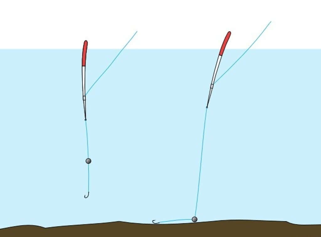 Такие рыбы, как карп лещ и карась охотнее берут наживку, лежащую на донном грунте. При ловле этих представителей ихтиофауны нужно отгружать таким образом, чтобы он хорошо регистрировал поклёвки на подъём.