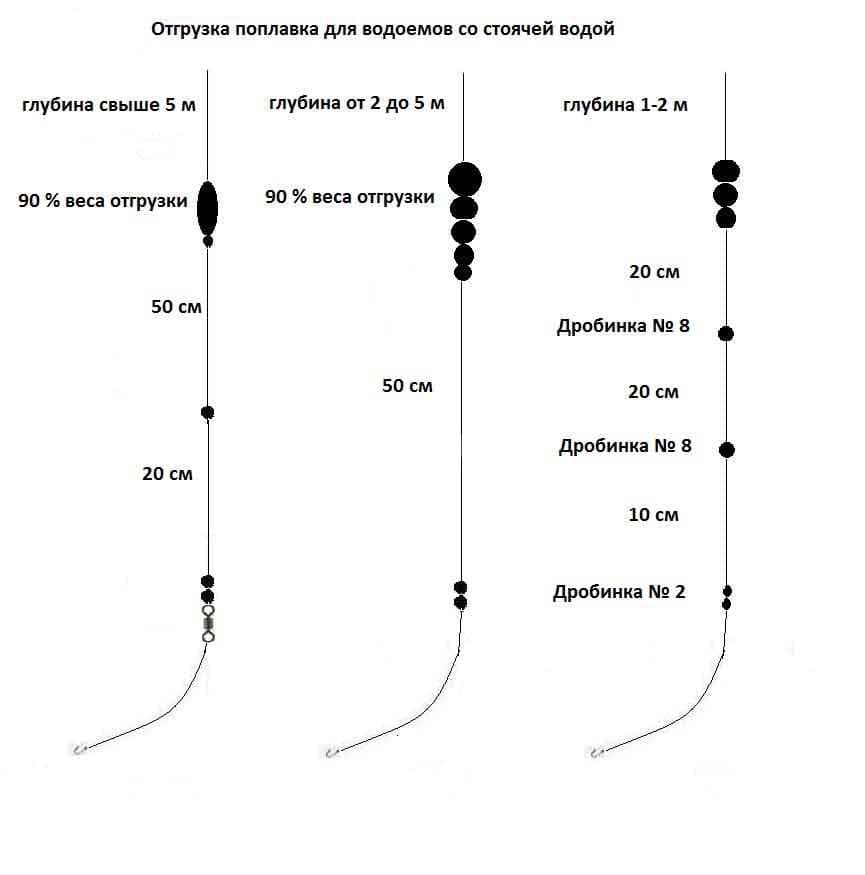 Правильная огрузка для поплавка при дальних забросах имеет важное значение. Установка веса над поплавком выполняется двумя способами:. Концентрированная огрузка также используется на глубине, но в отличие от распределенной, требует более тяжелых оснасток