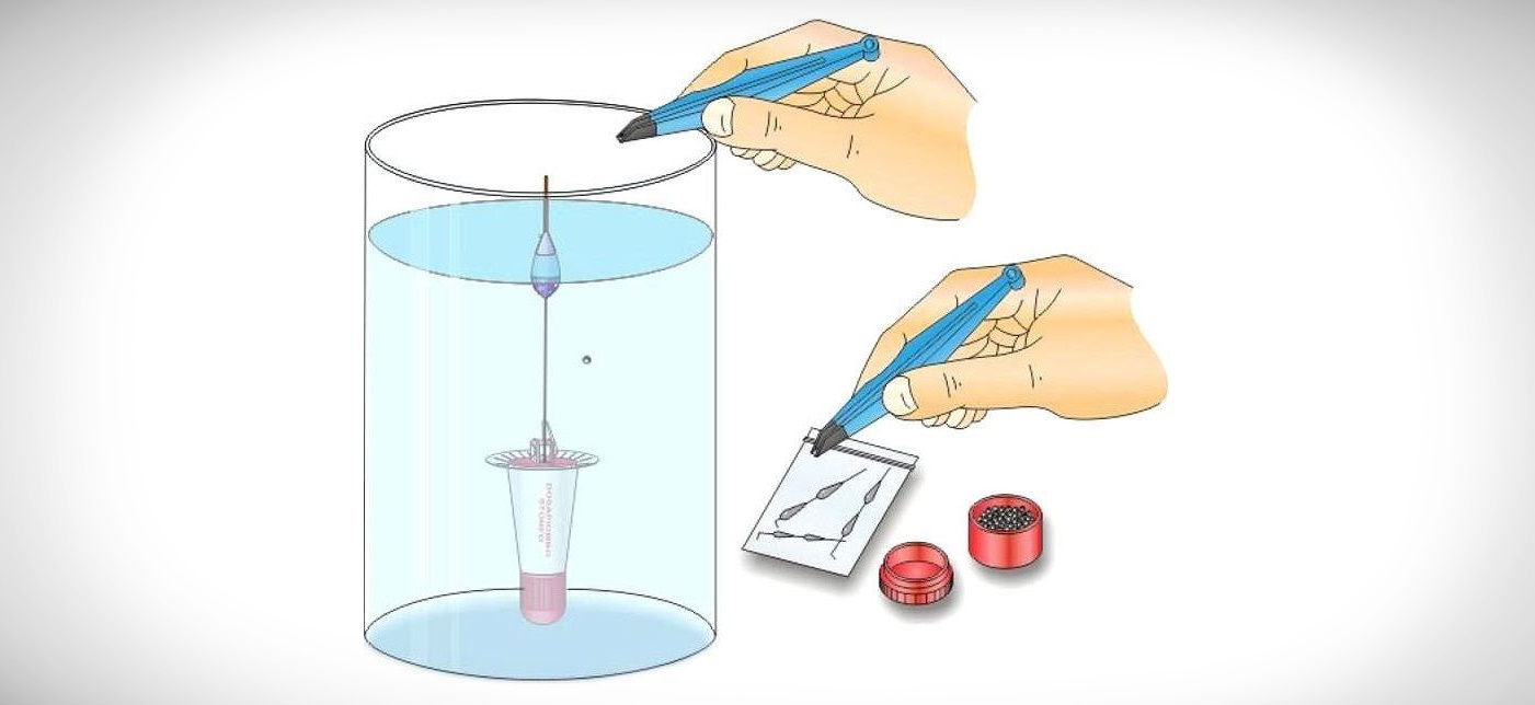 Если у рыболова нет желания самостоятельно изготавливать приспособление для огрузки, он может приобрести фабричный вариант. Киль сигнализатора поклёвки вставляется в небольшое отверстие, сделанное швейной иглой. В углубление помещается несколько свинцовых дробинок, веса которых предположительно должно хватить для огрузки. Далее, конструкция опускается в ёмкость с водой. При необходимости дробинки добавляются или изымаются из чаши.