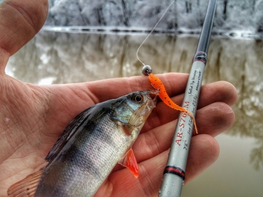 Самая уловистая снасть была оснащенная этой силиконовой приманкой в цвете: