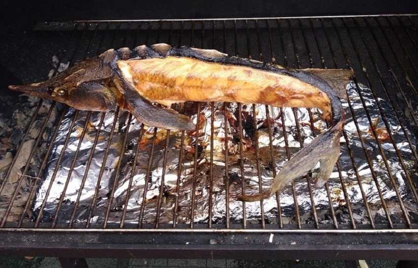 Если же коптильни нет, то можно воспользоваться и обычным уличным грилем. Но здесь тоже есть пара нюансов, которые обязательно нужно учесть. Копчение стерляди на гриле в домашних условиях выполняется так: