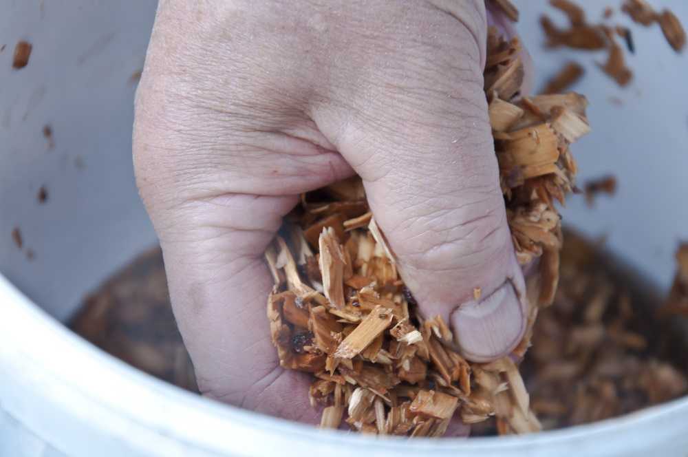 - На дно коптильни засыпается щепа ольхи или бука. Для рыбы рекомендуют использовать фруктовые породы, помогающие придать пикантности блюду.