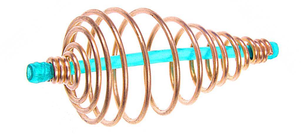 Простейшая кормушка без грузила делается из стальной проволоки и трубочки. Проволока берется толщиной 1 – 1,5 мм. Роль трубочки может сыграть пустая паста от ручки. Из проволоки сворачивают спираль. Она может иметь цилиндрическую форму или форму в виде двух совмещенных основаниями конусов. В середине пропускают отрезок трубочки. Концы проволоки крепятся на краях трубки. Это осуществляется плотной обмоткой. Вот и готова кормушка.
