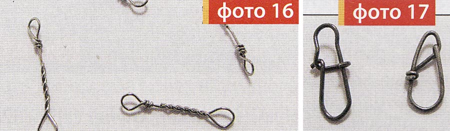 Третий вид поводка – это две глухих «скрутки», на одной из которых помещается застежка ( фото 8). Широко используемые в нахлысте для крепления достаточно крупных «нимф», стримеров и т.п., такие застежки не менее популярны и у рыболовов в ультралайт спиннинге. Но о самих застежках чуть позже – в соответствующем разделе.