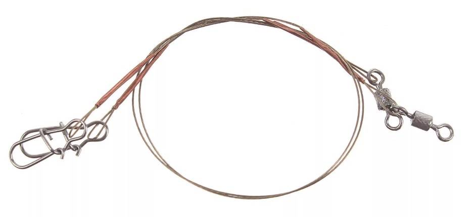 Из тонких стальных нитей в результате их переплетения и последующего покрытия полиэтиленовым составом производят поводочный материал, который отличается повышенной пластичностью и более высокими эксплуатационными качествами. Стальные отводы комплектуются вертлюжком и застёжкой.