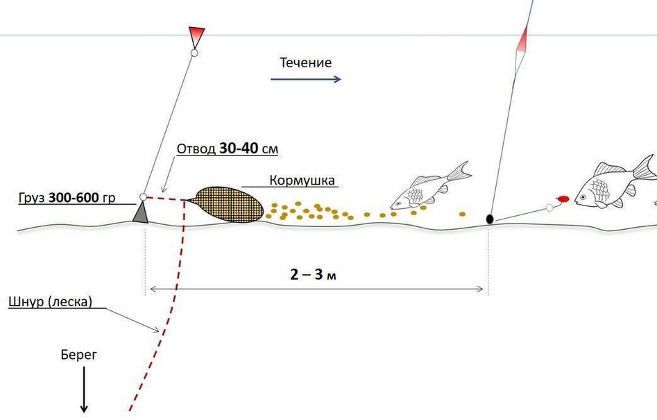 Особенность фидерной рыбалки — точечная доставка приманки, создание аппетитного кормового пятна.
