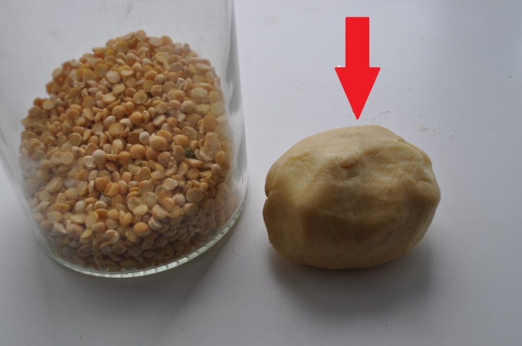 В приготовлении этой насадки для карася своими руками также нет ничего сложного. Купите в магазине колотый горох, опустите в кипящую воду и варите до тех пор, пока он не превратится в кашицу. Перед полной готовностью добавьте в нее 2-3 столовые ложки манной крупы. Получившуюся смесь тщательно вымесите на деревянной доске, в процессе добавив в нее еще одну столовую ложку манки. Насадка будет готова, когда масса приобретет консистенцию пластилина и перестанет приставать к пальцам. Если вы планируете ловить карася на донку, во время приготовления насадки добавьте к ней одно яйцо – это сделает мастырку более вязкой.