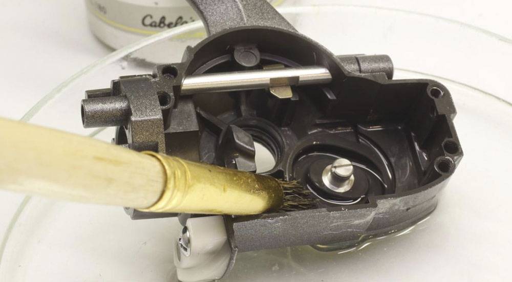 Если вам нужно удалить загрязнения в труднодоступных уголках, то используйте либо пинцет, либо ватные палочки. Категорически не рекомендуется использовать для удаления грязи агрессивные бытовые очищающие средства. Осуществляя ремонт катушек для спиннинга, лучше использовать для очистки бензин или спирт