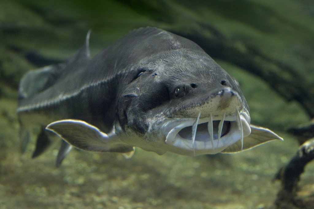 Калуга – вырастает до шести метров при массе 500 кг. Промысловый вес составляет 150 кг. Имеет сросшиеся межжаберные перепонки и заостренное рыло с полукруглым ртом, рядом с которым находятся листовидные боковые усы. Тело покрыто костяными зернами. Водится в бассейне реки Амур.