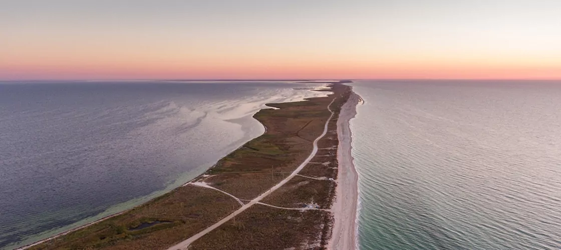 Отличное место для любителей покататься на кайте. На косе Таганрогский залив разделен на двое. Если с одной стороны полная тишь, то с другой стороны обязательно будет ветер, подходящий для катания.