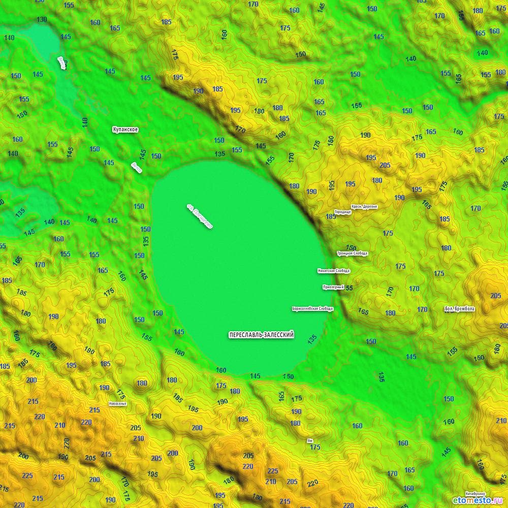 Впадину вокруг Плещеева озера (особенно северо-восточный край) видно на карте высот.