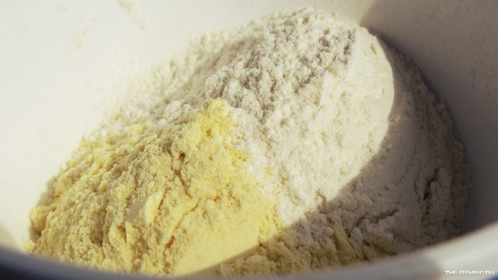 Этого количества будет достаточно для одной рыбалки, если использовать мамалыгу как насадку, но его можно пропорционально увеличить. При отсутствии кукурузной муки, ее можно сделать из крупы, путем измельчения в электрической кофемолке.