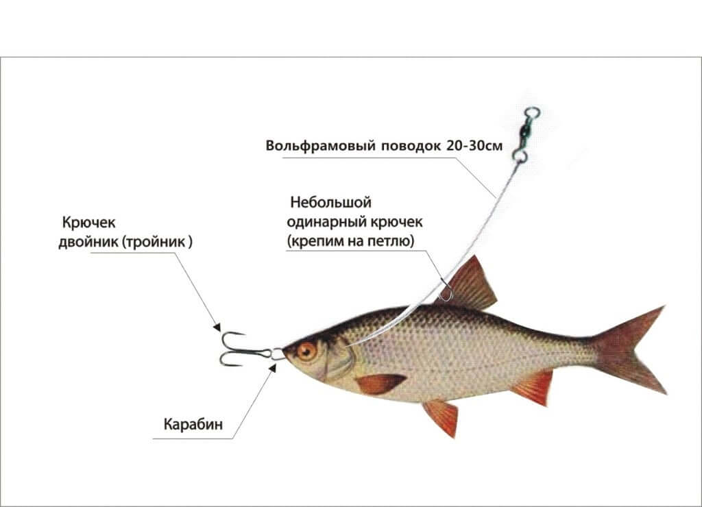 Крючок — крупный двойник или тройник, желательно с длинным цевьём.