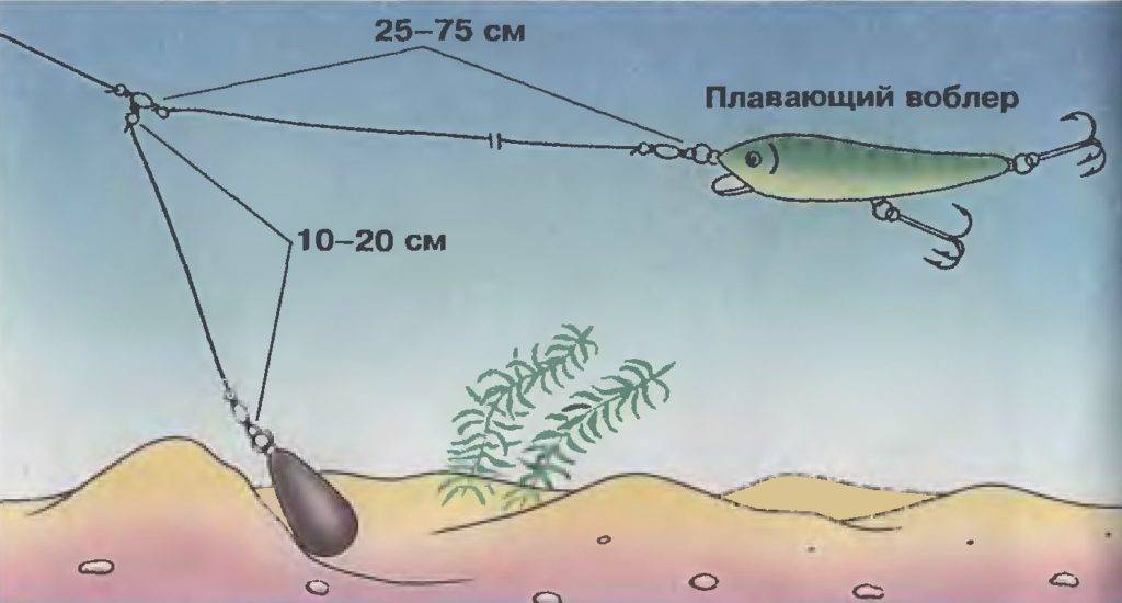 При ловле на приличных глубинах использование дополнительных элементов оснастки, таких как грузила и синкеры, является обязательным. Если рыбалка проходит на неглубоком водоеме, достаточно использовать воблеры с подходящей величиной заглубления. Нужно иметь в виду, что при проводке против течения они будут погружаться сильнее, чтобы выбрать подходящие для ловли в таких условиях модели.