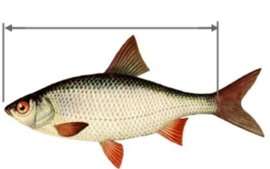 - у рыб — путем измерения длины от вершины рыла (при закрытом рте) до основания средних лучей хвостового плавника.