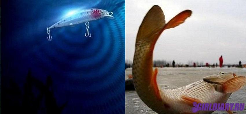 С помощью преобразователя в приманке излучаются импульсные звуковые волны, которые благодаря чувствительности рецепторов рыбы быстро достигают своей цели.