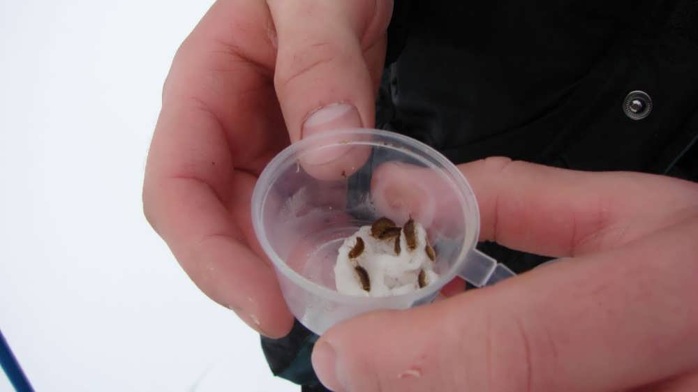 В принципе, казар можно вполне неплохо хранить, поместив их в емкость с водой. Но зимой мы в первую очередь нацелены на щуку, поэтому в емкости (ванне) храним живца, а казару добываем по факту на рыбалке — и тут же используем.