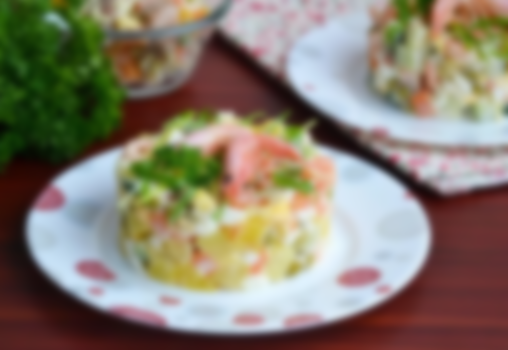 Все необходимые компоненты готовы. Можно приступать к сборке салата.