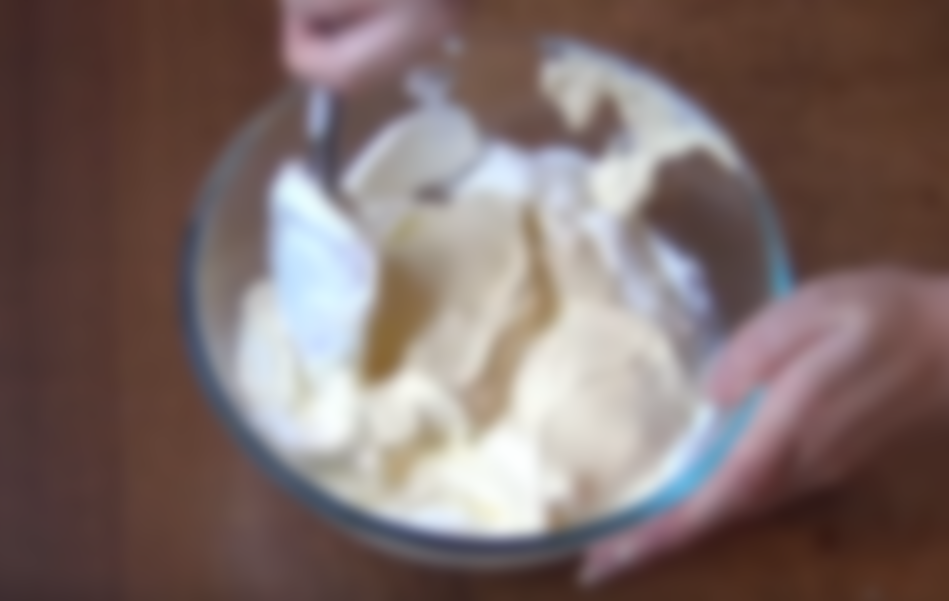 - Набухший желатин подогреваем и начинаем тоненькой струйкой вводить в крем, постоянно взбивая всю массу миксером на низких оборотах. Должна получиться равномерная масса.