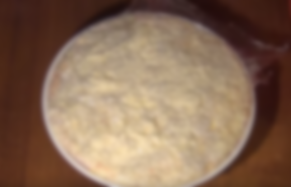- Глубокую салатницу или миску выстилаем несколькими слоями пищевой плёнки.