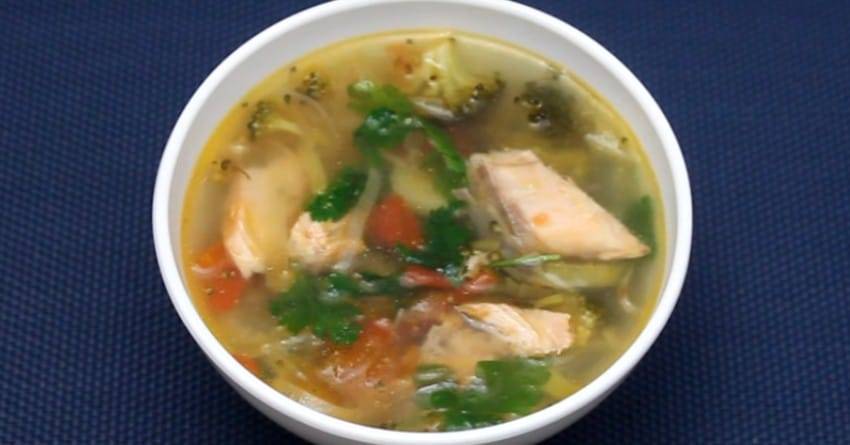 Очень полезный суп, который варится из обрезков горбуши, но вы можете взять другую рыбу. Вкусно получается из минтая, скумбрии и т.д., в зависимости от того, что есть у вас в холодильнике. В перечень продуктов входит ингредиент, который многие не любят – брокколи. Смело кладите его в суп – за ароматом рыбы и зелени он практически незаметен.