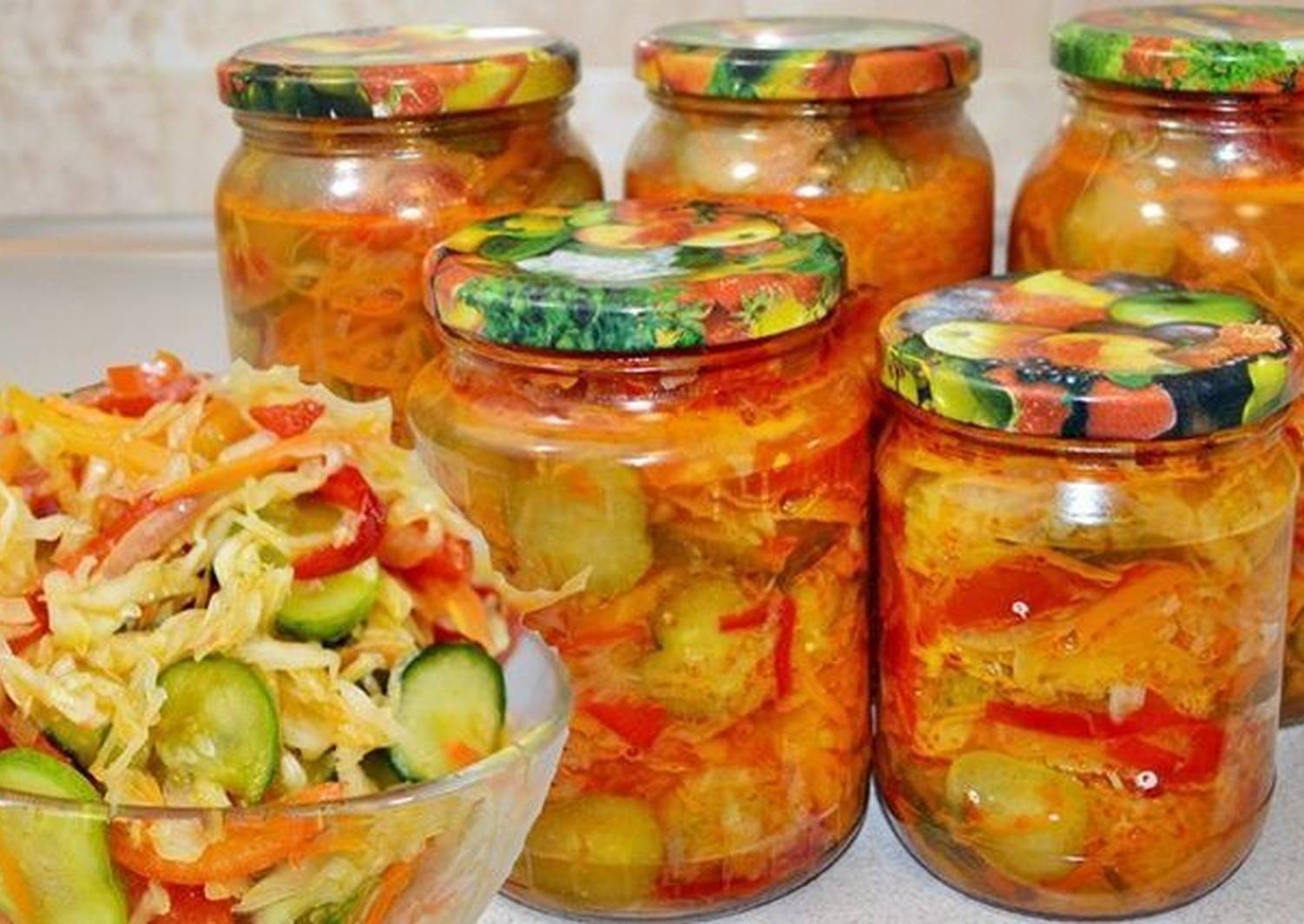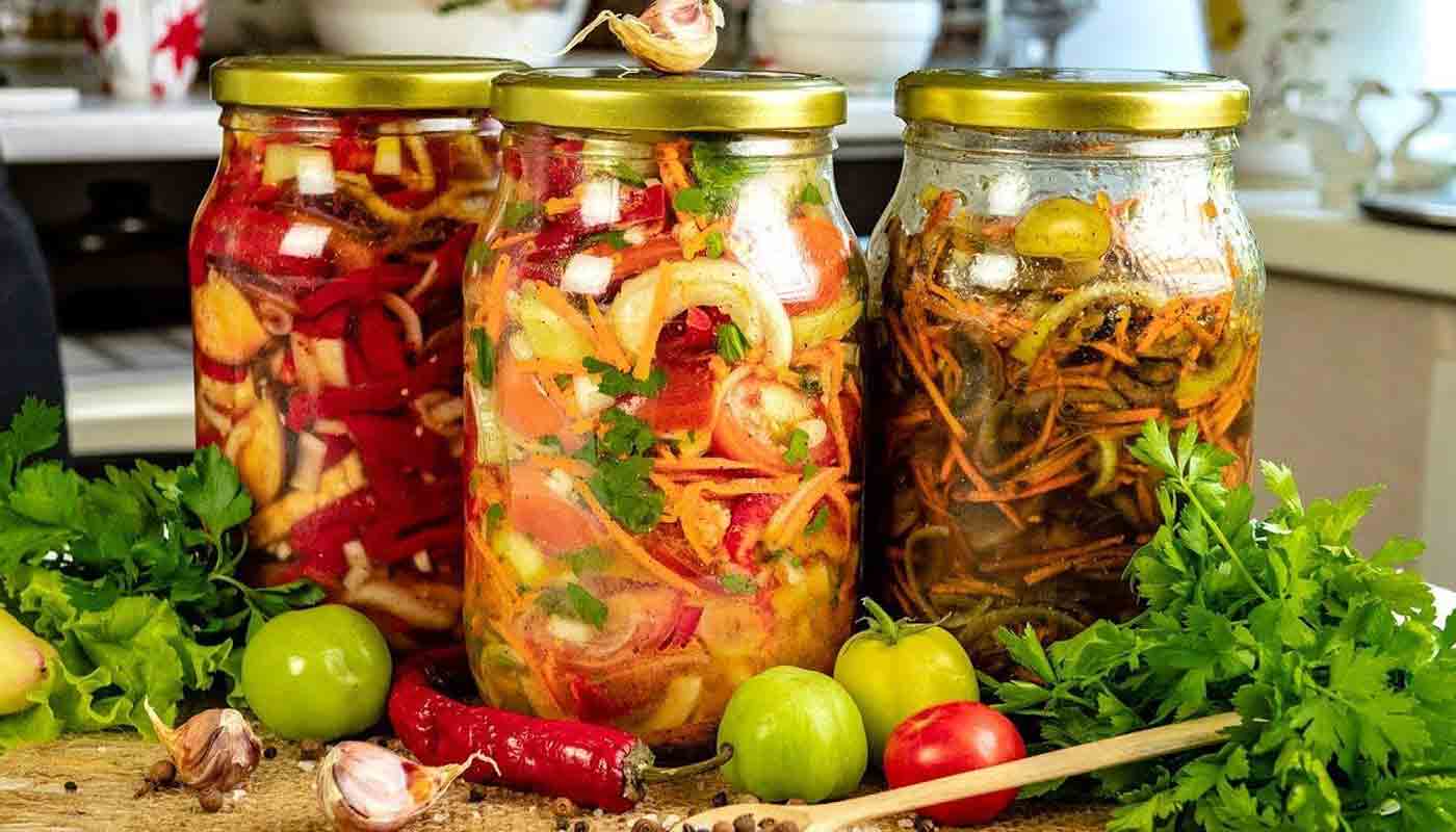 Овощные салаты с рыбой на зиму