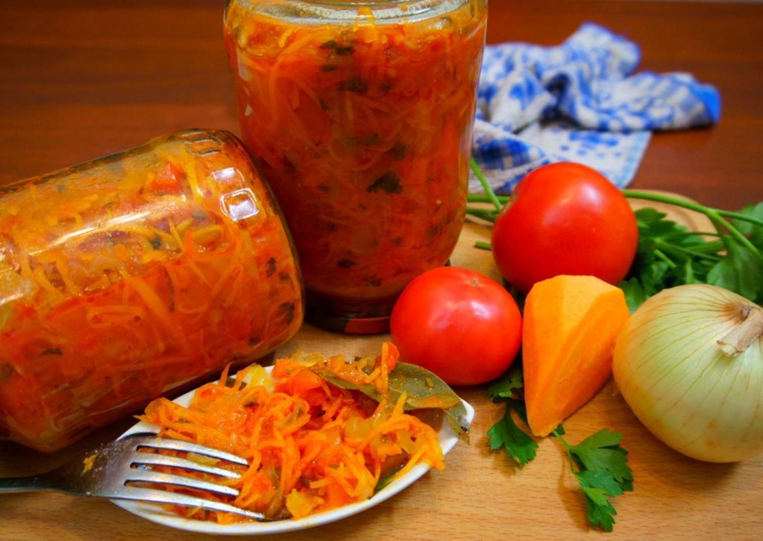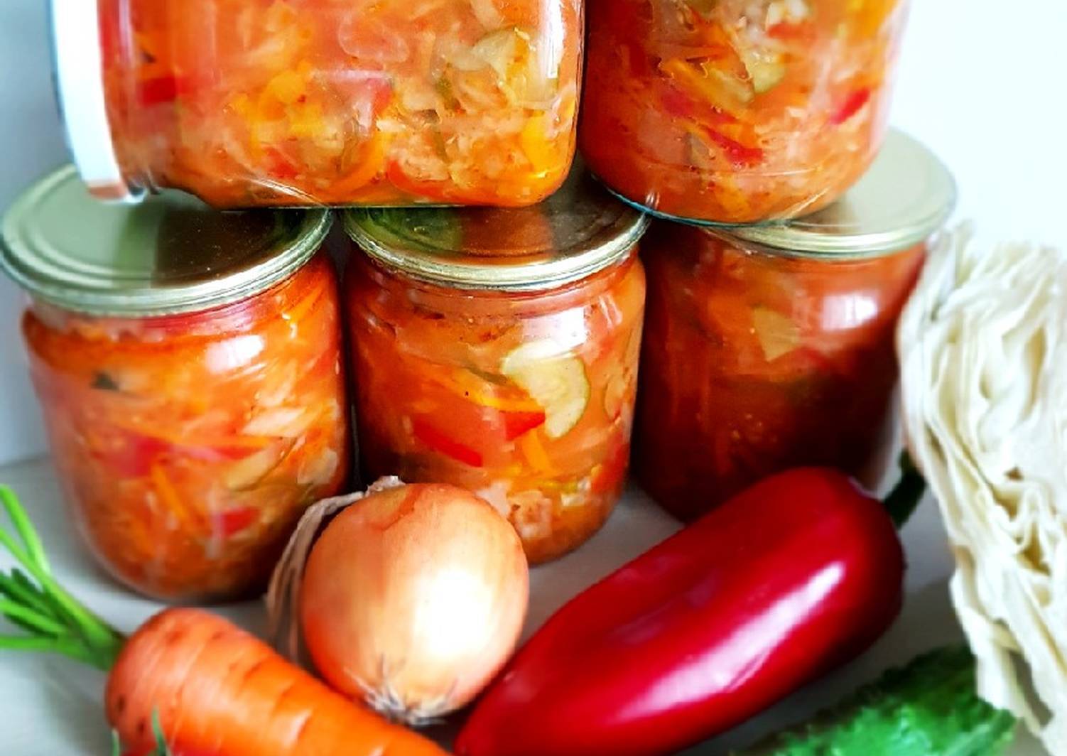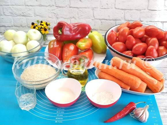 - по 1 кг очищенной моркови, болгарского перца, репчатого лука;