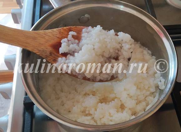 4. После того как вода закипит, я варю рис несколько минут. В этот раз рис впитал всю воду. Я даже ее не сливала. Просто отставила сотейник с рисом в сторону.