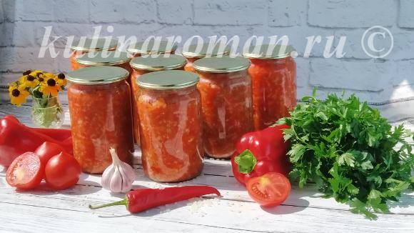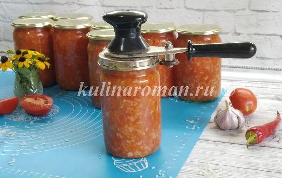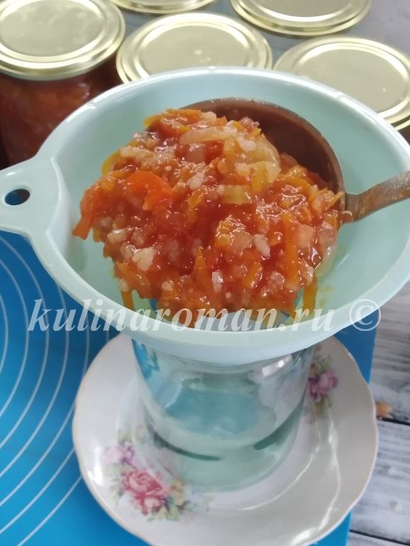 - Горячую заготовку разложить в банки, закрыть крышками, когда остынут, отправить на хранение.
