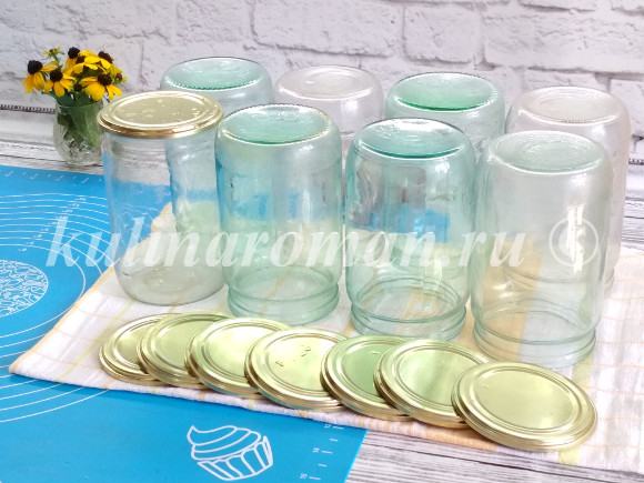 для заготовок используют стеклянные банки небольшой емкости, тщательно моются пищевой содой, лимонной кислотой, порошком горчицы или водой с уксусом;