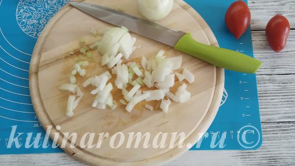 Итак, лук очищаем и нарезаем на мелкие кубики.