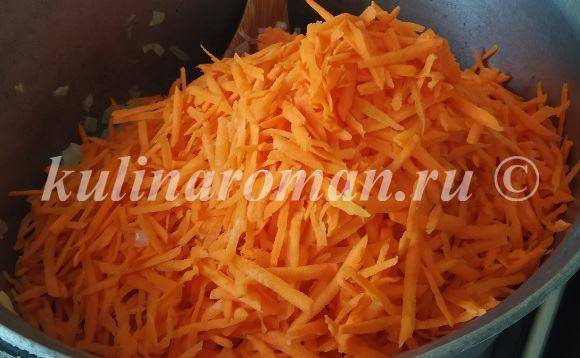 - После добавить морковь и, периодически помешивая, дождаться, пока она не станет мягкой.