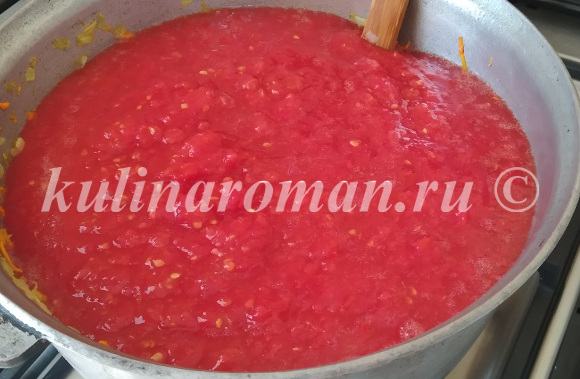 15. Добавляем измельченные помидоры.