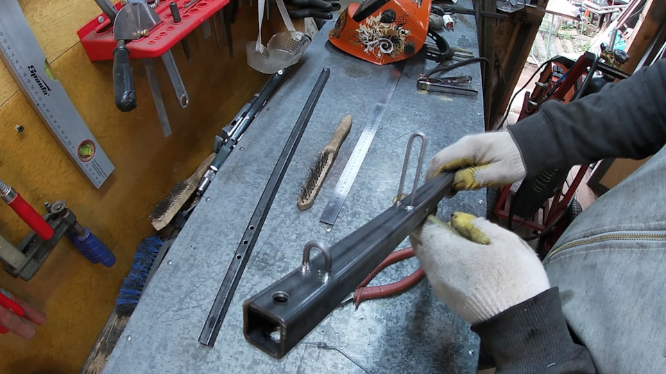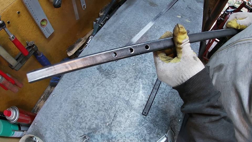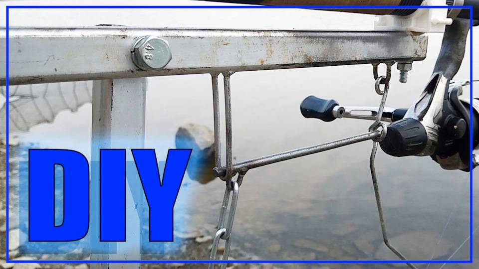 Это автоматический самоподсекатель для удочек, который позволяет подсечь рыбу в момент поклевки. Рыбаки меня поймут, что когда рыбачишь на фидерную снасть, поклевка обычно происходит когда ты находишься далеко от удочки и пока ты добежишь до нее рыба успевает выплюнуть наживку и поклевка остается нереализованной. Здесь же срабатывает автоматический механизм позволяющий подсечь рыбу и удерживать ее до прихода рыбака не давая запутать снасть или спрятаться за какой-нибудь корягой.За основу были взяты два отрезка металлической профильной трубы 20 на 20, с толщиной стенок 2 миллиметра, один длиной 45 сантиметров а другой 75 сантиметров. В отрезке 45 сантиметров нужно просверлить три отверстия два отверстия по краям и одно примерно посередине, во втором отрезке также нужно просверлить отверстия по краям и несколько рядом расположенных отверстий для регулировки натяжения пружины, в каком месте их сверлить всё зависит от самой пружины.