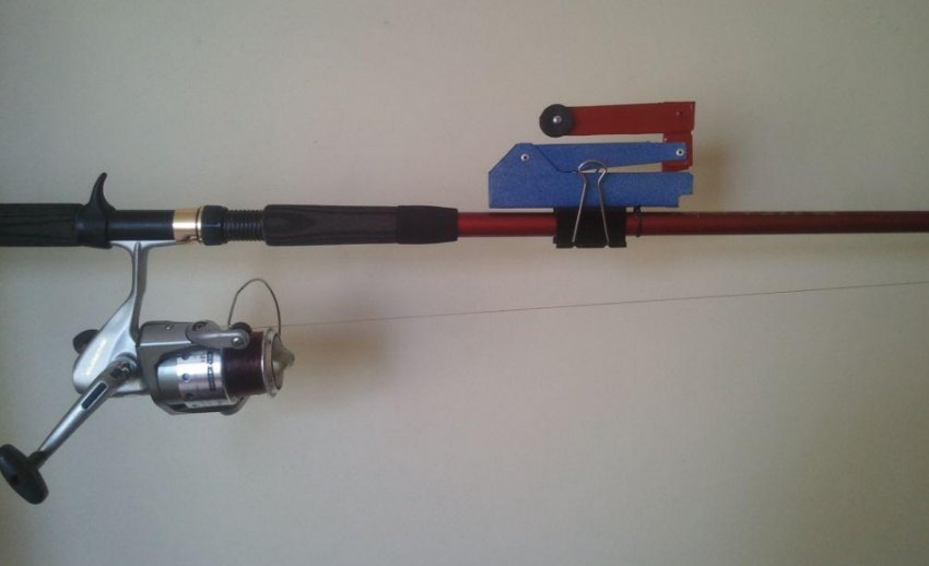 - После заброса приманки, устройство одним концом фиксируется к первому кольцу снасти.
