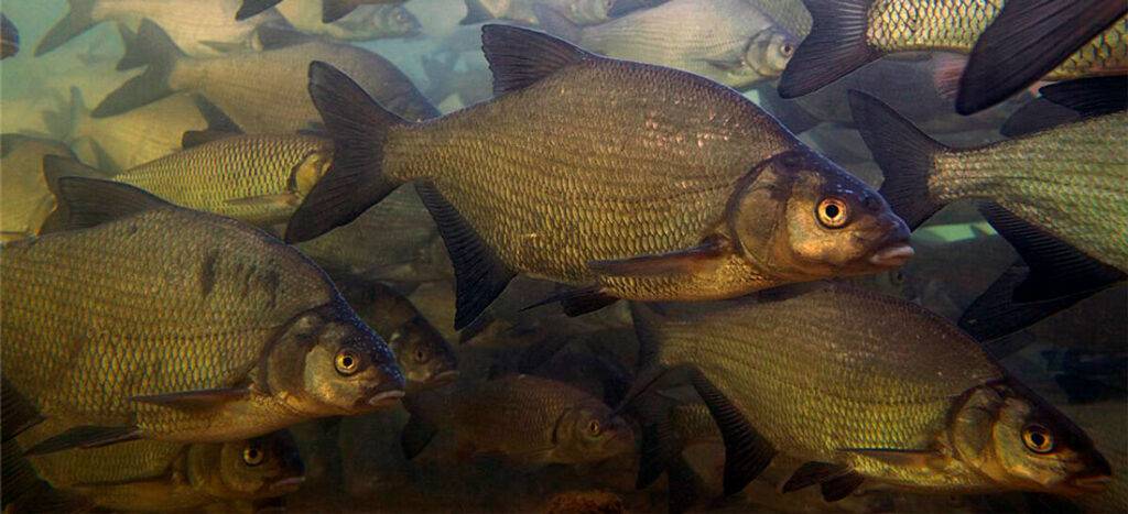 Фото: стая лещей во время нереста