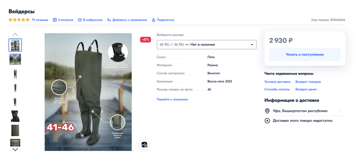 Еще пригодятся самые простые резиновые сапоги — от 1500 Р. Можно купить специальные болотные сапоги — бродни — от 3500 Р. В них можно заходить в воду почти по пояс — это удобно, если ловишь рыбу на спиннинг.