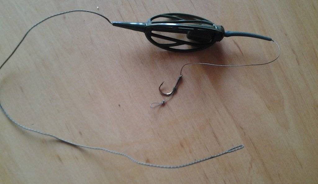 Важно, чтобы поводок был из мягкого материала без эффекта «памяти», для этого хорошо подходят плетеные лески. Кормушка монтируется на основной леске как глухим, так и скользящим способом