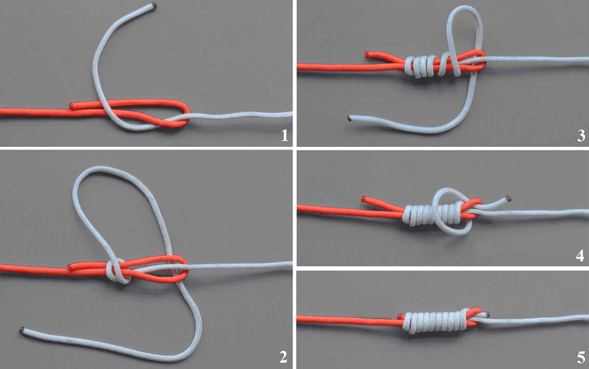 После этого держа петлю, сделанную из плетенки, нужно будет обкрутить монолеску или монофилку вокруг петельки не меньше 10 раз. Должно в итоге получиться что-то похожее внешне на косичку. Обматывать следует постепенно и не спеша. Затем следует придавить край 10го витка и обвивать в другую сторону, то есть туда, откуда начиналась процедура. Делать надо также 10 витков. Проделав все это, нужно просунуть основную леску в петлю и затянуть узел из плетенки. Самое сложное уже позади. Остается только лишь затянуть. Есть и свои аспекты и хитрости. Чтобы узелок был прочнее, его надо смочить. Именно этот узел очень слаб к перегоранию лески. Это возникает из-за того, что при затягивании получается огромная нагрузка на основную нить. Если затягивать неправильно, то и лопнуть леска может без труда. Чтобы не пустить всю работу насмарку, необходимо затягивать за два края: и плетенку, и леску. Следует запомнить, что монолеску с витками надо двигать в направлении узла. По завершении этих процедур должно получиться два конца. Край из основной лески нужно обрезать, так сказать, под корешок, а второй через отступ в 3 мм от самого узла. Плетенку можно резать и под основание только в том случае, если узел промазан клеем