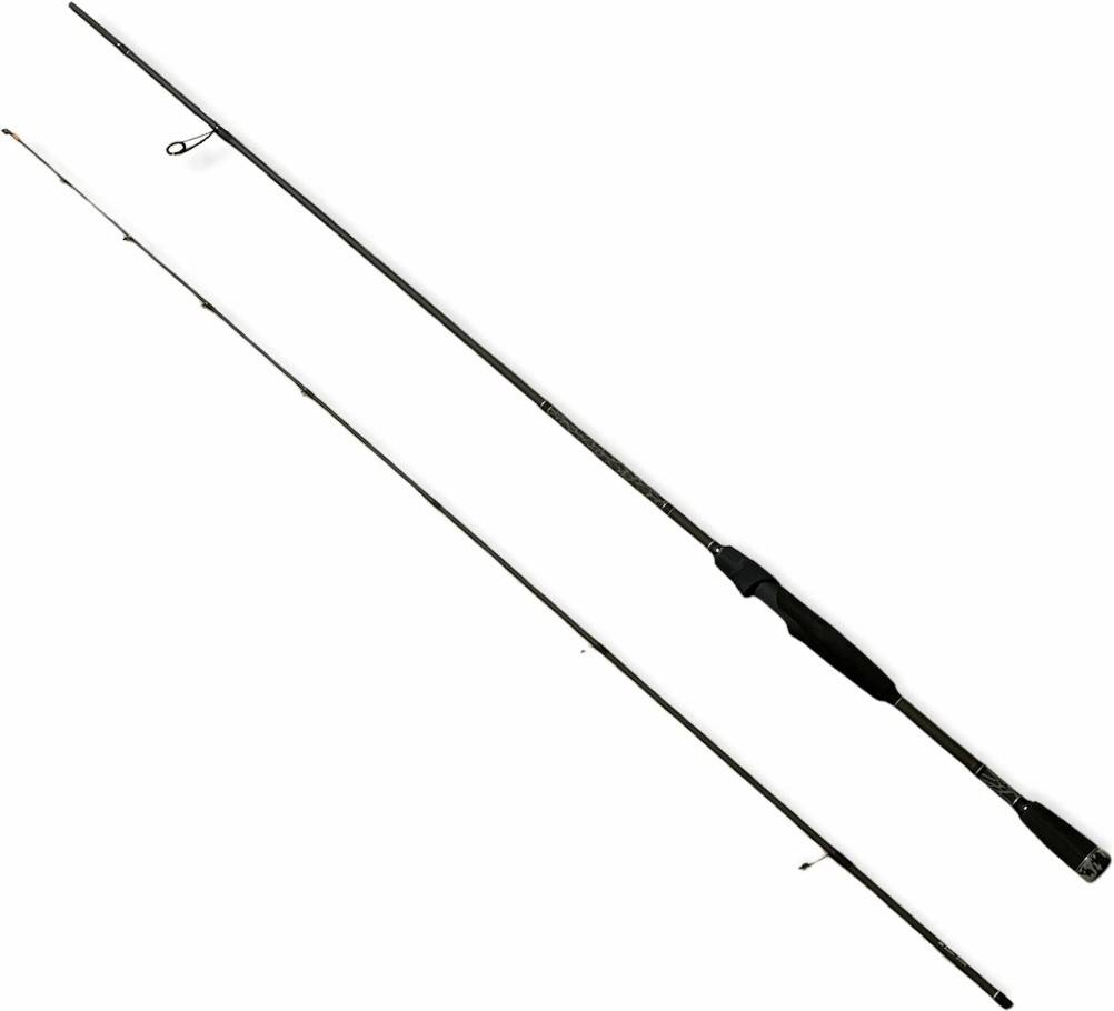 Карбоновый спиннинг с 2 секциями, весом 104г. имеет быстрый строй и большую чувствительность. Подходит для небольших водоемов. Маленький тест, жесткость и легкость разрешает играть маленькими приманками очень профессионально – крупной рыбе не устоят. При этом рыболову не стоит беспокоиться о надежности и крепости удилища. Бланк сделан из углеволокна 57TON
