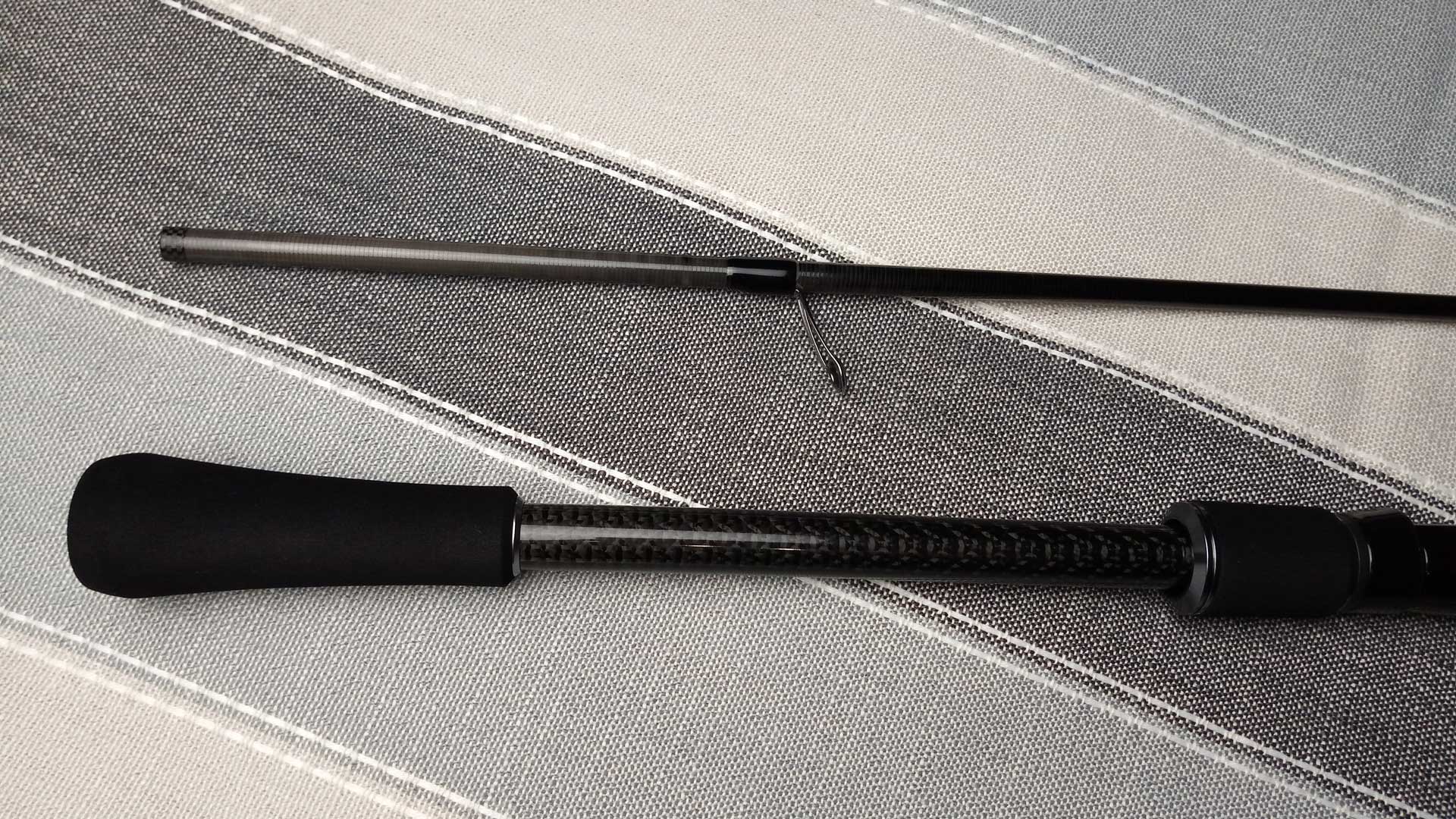 | Рукоять | Рукоять разнесенного типа, выполнена из EVA. Катушкодержатель Fuji VSS c нижней карбоновой гайкой. Общая длина рукояти 39 см. Расстояние от рукояти до первого кольца 64 см. |