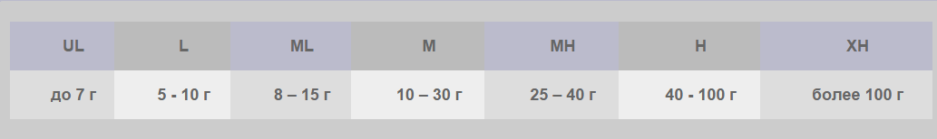 Это распространенный метод различия снастей. Сделан для подбора спиннингов среди большинства изготовителей рыбацкого снаряжения. Но из-за отсутствия международной классификации эта часть распознавания снастей считается условной.