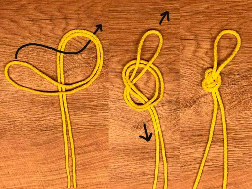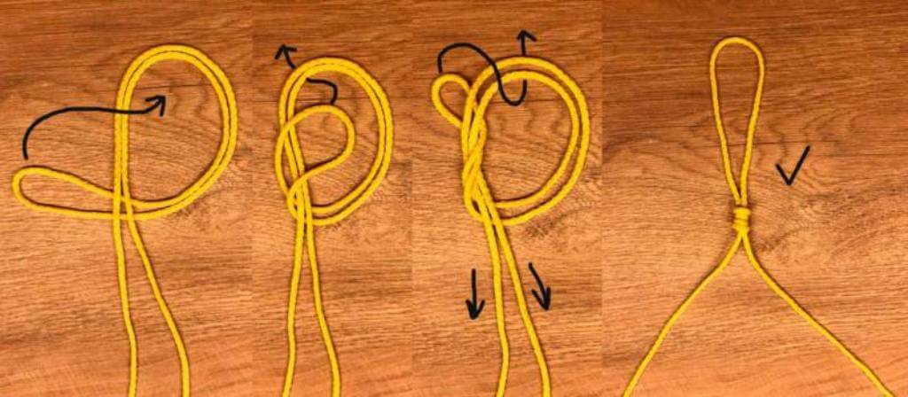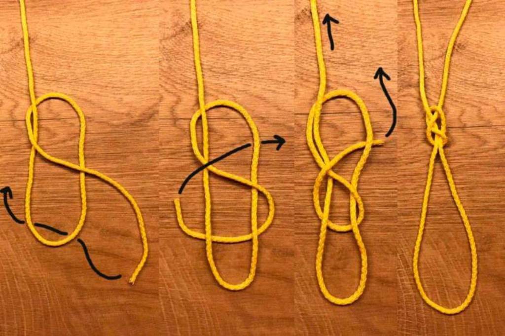 - эта петля оборачивается вокруг основной веревки и опускается в образовавшееся отверстие.