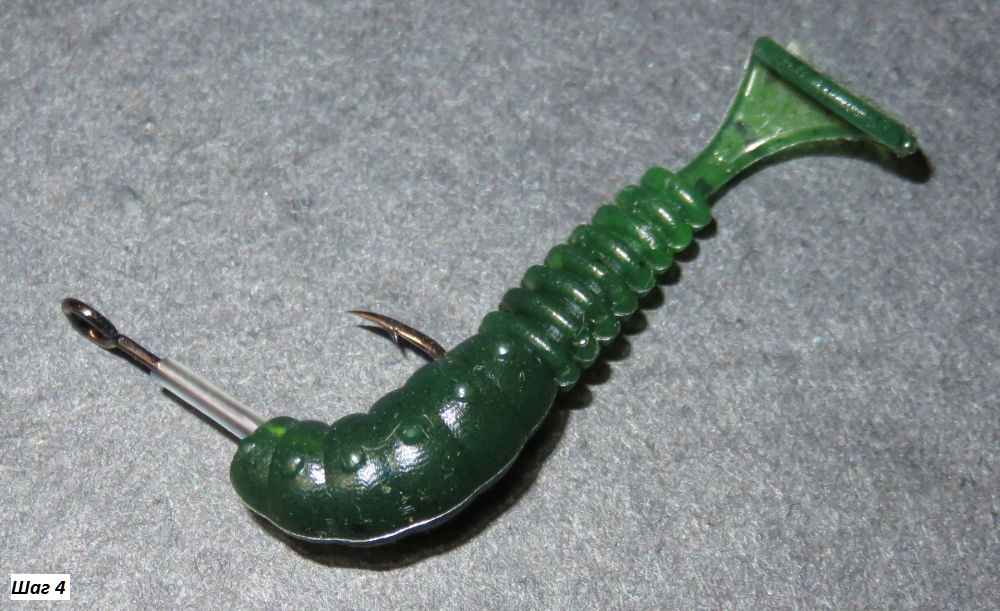 В силу же относительной подвижности виброхвостов или твистеров на крючке со стопором, а также благодаря свойству материала приманок растягиваться, их целостность при таком монтаже будет нарушаться в меньшей степени. Получается, что моя доработка является этакой золотой серединой между голым крючком и пружинками-ввёртышами.