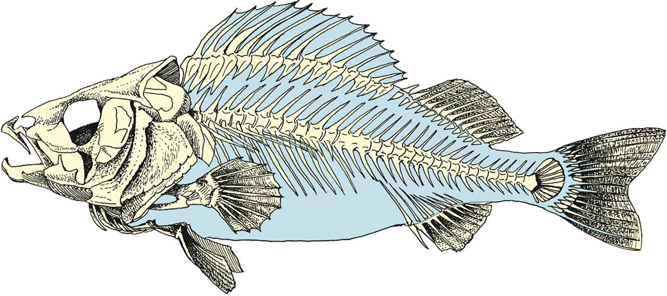 Скелет рыбы состоит из большого числа костей. Его основу составляет гибкий и упругий позвоночник. Череп защищает головной мозг и органы головы, а также образует твердую основу челюстей. Скелет рыбы Позвонок