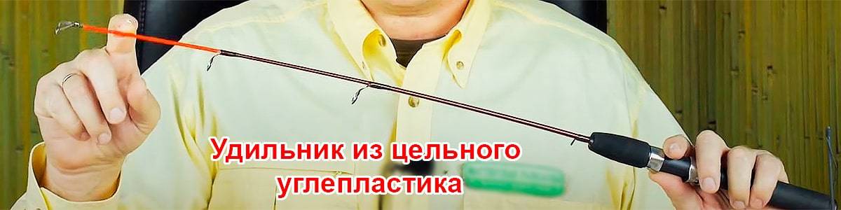 Вот этот, например, изготовлен из цельного углепластика. То есть, это не трубка, а углепластиковый пруток. Соответственно удильник очень жесткий и довольно-таки надежный.