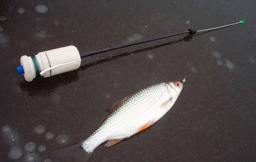 Для оснащения зимней поплавочной удочки используется монофильная леска толщиной от 0,12 до 0,18 миллиметров. Тонкие диаметры применяются при ловле без поводка на малой глубине, а для большой глубины лучше подойдет снасть с более толстой леской и поводком.
